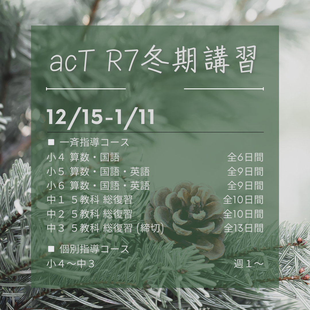 令和7年度 新規受講生の申し込み受付を開始しております! アクトアカデミーでは、小学校1年生から高校3年生の生…